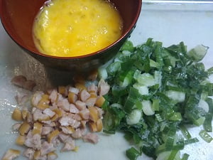 1.材料を切り卵を溶いておく。