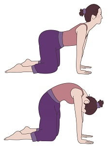 1.四つん這いになり手と膝を肩幅に開く。