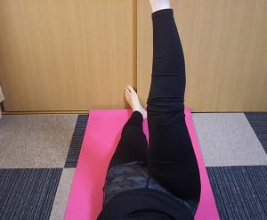 仰向けに寝て右足を真っ直ぐ上げる。